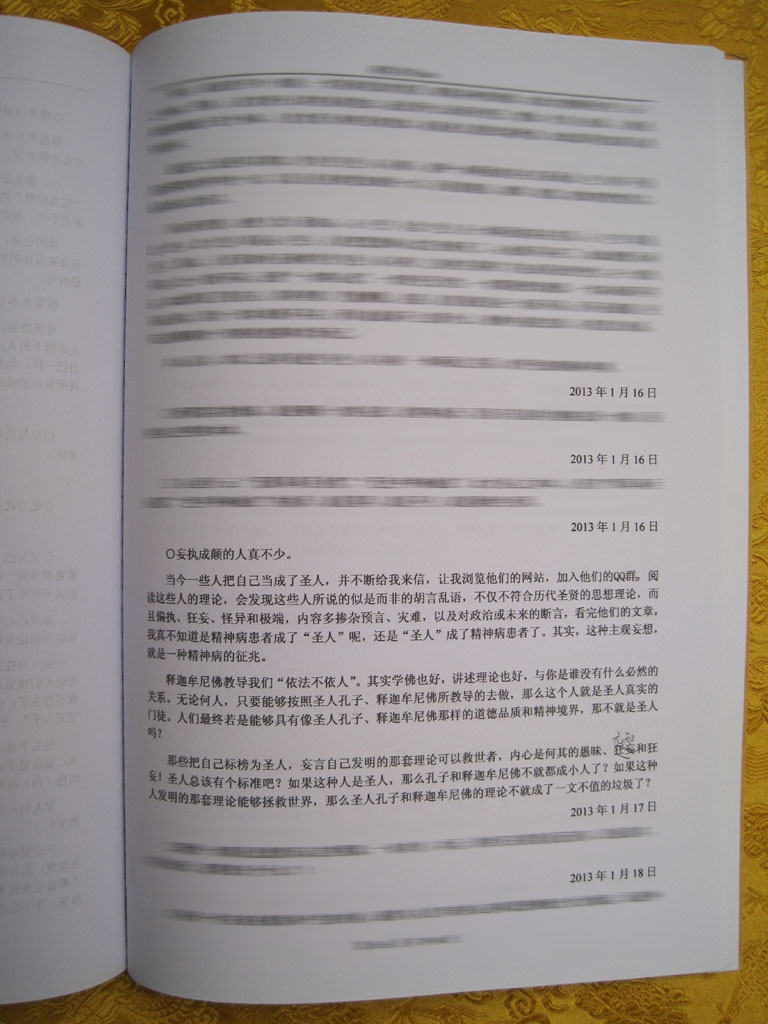 ○妄执成颠的人真不少。 当今一些人把自己当成了圣人,并不断给我来信,让我浏览他们的网站,加入他们的QQ群。阅读这些人的理论,会发现这些人所说的似是而非的胡言乱语,不仅不符合历代圣贤的思想理论,而且偏执、狂妄、怪异和极端,内容多掺杂预言、灾难,以及对政治或未来的断言,看完他们的文章,我真不知道是精神病患者成了“圣人”呢,还是“圣人”成了精神病患者了。其实,这种主观妄想,就是一种精神病的征兆。 释迦牟尼佛教导我们“依法不依人”。其实学佛也好,讲述理论也好,与你是谁没有什么必然的关系。无论何人,只要能够按照圣人孔子、释迦牟尼佛所教导的去做,那么这个人就是圣人真实的门徒。人们最终若是能够具有像圣人孔子、释迦牟尼佛那样的道德品质和精神境界,那不就是圣人吗? 那些把自己标榜为圣人,妄言自己发明的那套理论可以救世者,内心是何其的愚昧、无知和狂妄!圣人总该有个标准吧?如果这种人是圣人,那么孔子和释迦牟尼佛不就都成小人了?如果这种人发明的那套理论能够拯救世界,那么圣人孔子和释迦牟尼佛的理论不就成了一文不值的垃圾了?