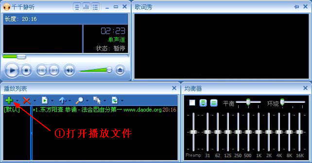 第一步:安装和打开“千千静听”播放软件;第二步:打开要播放的MP3有声书。