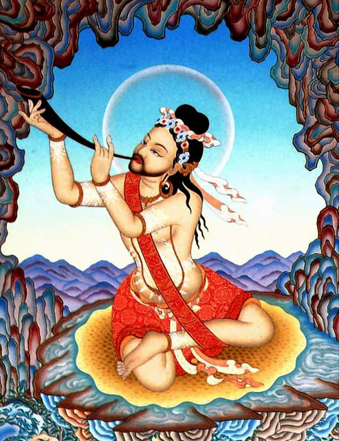 苦行第一: 在两人行经一片竹林,向下走去的过程当中,大圣帝洛巴转过身来,突然将那若巴尊者打翻在一个砂石洞中,并用一段竹棍,猛击他的身体要害,那若巴尊者就这样被莫名其妙地打了个半死。 大圣帝洛巴只是盯着他的面孔看了一眼,就想离开;这时,那若巴尊者虽然已经动弹不得了,但是,仍然坚请帝洛巴尊者留下来住在附近;而大圣帝洛巴却是二话没说,扭身便就远远地走掉了。 (那若巴尊者被独自留在那个地方,心中历经万般感慨,自不待言。) 就这样苦熬了三夜,大圣帝洛巴才又重新出现在他的面前,并且戏谑地问道: “那若巴,怎么样,你感觉难受吗?” 那若巴尊者有气无力地回答说: “很难受啊,师父,我都快成尸体一般死掉了!” 在这种情形之下,大圣帝洛巴只是在他的身上轻轻地挥了挥手,一切就又都恢复如常了。这时,大圣帝洛巴,也给尊者取了一个新的名字——那若巴。 苦行第二: 从此以后,照样还是大圣帝洛巴走到哪里,那若巴尊者便跟到那里。 一次,有位法主正在讲法,出家徒众们还在法席之中受教,尚未用斋。这时,大圣帝洛巴却说: “那若巴,我已经饿得站不住了!你赶快去,在他们没有开斋之前,先要些吃的来!” 那若巴尊者听了之后,自然不敢怠慢,赶快照着去做。但是,那个寺庙的典座师父却对他说: “还未供养僧众,怎么能够先给你呢?!” 因为尚未供养僧众之前,不能先施予他人,这是各地佛教的规矩,所以,任他怎么乞求,那位典座师父却也怎么都不肯给他。 那若巴尊者一看乞求不到,于是,就打起其他的主意来了。他偷眼左右顾视着,准备伺机而动。趁典座师父没有在意的时候,猛然舀了一托巴的斋饭,就想逃跑;可是那寺中的守卫,却并没有就此罢手,而是提着棍棒,追了下来。 在这紧要的关头,大圣帝洛巴只用一种独特的眼神,冲他们轻轻地瞥了一下,那些追赶他的人们,便就都僵立在半路,动弹不得了。据说,等到那若巴尊者脱离了危险,大圣帝洛巴才解除了那些人的僵立的状态。 苦行第三: 在那个地方供养上师之后,照样还是大圣帝洛巴走到哪里,那若巴尊者便跟到哪里。 有一次,他们两人一起爬到了佛殿屋顶的最高处。这时,大圣帝洛巴又考验那若巴说: “如果真有不打折扣地按照师长的教敕去做的好弟子,他就应该从这高处跳下去!” 听了这样的话,那若巴尊者心中盘算着: “这里又没有其他的弟子,看来,这话肯定是冲我说的了。” 想到这里,那若巴尊者也就义无反顾地跳了下去,以致两条腿都被摔断了。帝洛巴上师只到近前看了一眼,就又不管不问地走开了。 (那若巴尊者被独自留在那里,心中历经万般感慨,自不待言。) 就这样苦熬了两三夜,大圣帝洛巴尊者才又重新出现在他的面前,并且戏谑地问道: “那若巴,怎么样,你感觉难受吗?” 那若巴尊者有气无力地回答说: “很难受啊,师父,我都快成尸体一般死掉了!” 这时,大圣帝洛巴只是冲他轻轻地挥了挥手,一切就又都恢复如常了。 苦行第四: 又有一次,正当他们师徒两人结伴而行的时候,大圣帝洛巴却用很多花朵结成了一个上好的花鬘,递给那若巴尊者,并吩咐说道: “在岔路口的下面,会有两个人护送着一位新娘走来。在遇到那几个人之后,你要对他们说‘请把这束美丽的花饰,戴给新娘’。对于你的祝福,差使们会表现得非常高兴,在他们向你馈赠礼物的时候,你不要去接,而要趁机去摸新娘的奶子!” 那若巴尊者听了师父的嘱托之后,当然不敢怠慢,于是,赶快照着去做了。对于尊者的戏弄,两位差使恼羞成怒,于是,就把他高高地吊了起来。 在这种情形发生之后,大圣帝洛巴才又不慌不忙地轻轻走来,戏谑地问道: “那若巴,怎么了,你又犯了什么错儿?” 那若巴尊者毫无怨言地答道: “我是照着上师您老人家的意思去做的,这不,就被他们吊了起来,现在我都快要死掉了!” 大圣帝洛巴依旧只是冲他轻轻地挥了挥手,一切就又恢复如常了。 苦行第五: 又有一次,因陀菩提的妻子,想请大圣帝洛巴作为荟供的主法者,于是就极为殷重恭敬地祈祷说: “大家都在说您大圣帝洛巴慧贤尊者具有神通;如果真是这样的话,那么,就请您劳驾到我们的荟供聚会中来吧!” 大圣帝洛巴借助于神通的力量,收到了她的邀请之后,别人多日的路程,他们在一夜之间,就赶到了那里。那时,那若巴尊者也已经获得了神通,于是,他们两人就一起利用神通,进入了祈祷者的庄园之中,悄悄地躲在了一座房屋的角落里。 过了一阵子,有一个人突然发现了他们,于是就惊慌失措地大声叫喊起来: “嗨——,房间角落里藏着两个叫花子!” 听到他的喊叫,因陀菩提的妻子也想起了先前的祷告,于是,就告诉大家说: “我先前曾经祈祷过大圣帝洛巴尊者到我们的荟供聚会中来,因此,我想有可能是他。” 他们经过询问查证之后,于是,那些参加聚会的人,于是就在大圣帝洛巴的面前,作了广大的荟供、供养以及承事。[此则似乎无苦可言] 苦行第六: 从此之后,照样还是大圣帝洛巴走到哪里,那若巴尊者便跟到哪里。 走累了,大圣帝洛巴就倒卧在一条大河岸边,吩咐道: “那若巴,我肚子饿了,你去帮我讨点东西吃吧!” 那若巴尊者于是就越过大河,设法要回了一团米饭。这时,才突然发现在上师的卧处之上,躺着的竟然是一个比丘!那若巴尊者心想:“那个比丘肯定是上师的化现!”于是,还照旧供养他食物。 万万没有想到的是,那变化为比丘的大圣帝洛巴,竟然勃然大怒