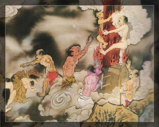 抱柱地狱欲海无边邪淫起 钢床火柱是家邦
