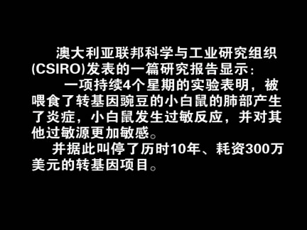 转基因食物的真相与危害(视频)原文标题:转基因的前世今生 视频来源:优酷视频