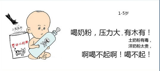 1~5岁喝奶粉,压力大,有木有! 自三鹿毒奶粉曝光以来,奶粉安全已经成为社会关注的热点话题。从“三鹿奶粉”到当下的“皮革奶”,让国人在为婴儿安全问题担忧。国产奶粉安全让人忧,进口奶粉价格又居高不下,无数网友们不禁感叹:中国毒奶粉何时休? 七成受访者不选国产奶粉 专家称不能迷信洋奶粉 前段时间,内地民众在香港、澳门大量购买进口婴幼儿奶粉,造成香港、澳门一度出现奶粉供应紧张的状况。此后,又有媒体报道有不法企业将皮革下脚料溶解后制成蛋白粉混到牛奶里。虽然经过排查,2010年并没有发现所谓的“皮革奶”,但是央视记者经过调查发现,目前消费者对国产奶粉的信心依旧不足。