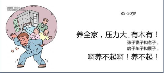 35~50岁养全家,压力大,有木有 你是房奴吗?你是孩奴吗?你是上有老下有小的青壮年吗?…… 西安“房奴”生存状态调查:30岁人成为还贷主体 “当初买房子时,想着一步到位,按儿子将来结婚,三代同堂的构想计划的,没想到买房后生活质量直线下降。”42岁的刘德生是西安一家事业单位的副总经理,他说,看大家都买了房,自己不买面子上说不过去,再就是怕房价上涨,于是“咬咬牙狠狠心”将工作这些年积攒的家底全交了首付,所剩无几……