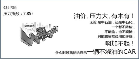 生活:有车也加不起油,压力大,有木有 汽油价格上涨,私家车主每年需多花4500块钱养车:自4月7日零点开始,汽、柴价格每吨分别提高500元和400元。这也是一年内油价的第六次调整,面对不断上涨的油价大家是否已经有了心理准备呢?
