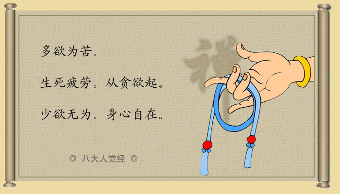 多欲为苦。 生死疲劳。从贪欲起。 少欲无为。身心自在。
