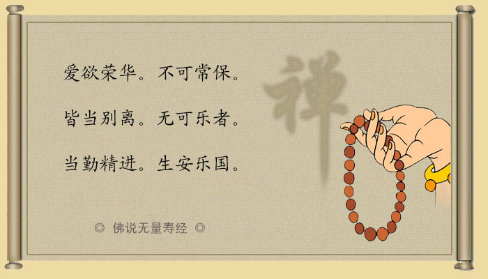 爱欲荣华。不可常保。 皆当别离。无可乐者。 当勤精进。生安乐国。