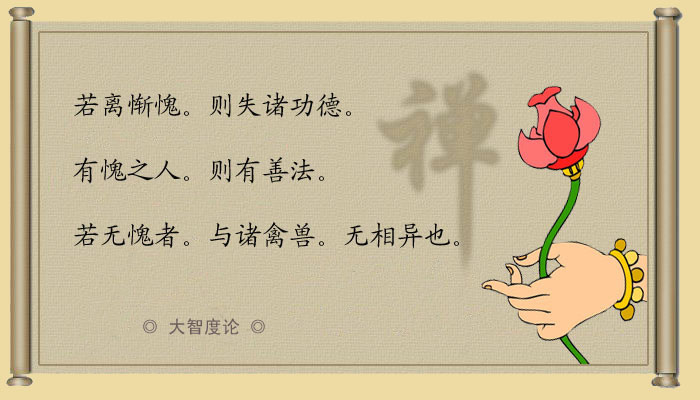 若离惭愧。则失诸功德。 有愧之人。则有善法。 若无惭愧者。与诸禽兽。无相异也。
