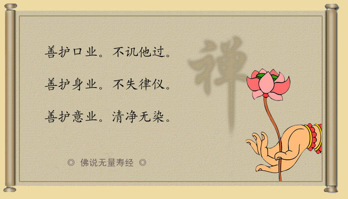 善护口业。不讥他过。 善护身业。不失律仪。 善护意业。清净无染。