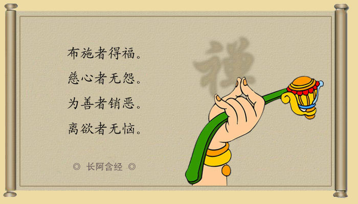 布施者得福。 慈心者无怨。 为善者销恶。 离欲者无恼。