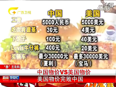 中国与美国物价对比(视频)
