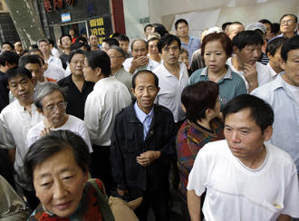 与杨武相对应的是杨佳,图为2008年杨佳庭审现场外面声援的公众