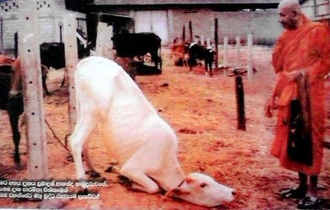 斯里兰卡一位僧人在屠宰场买下几头待宰杀的牛,其中一头当场给僧人下跪感恩!