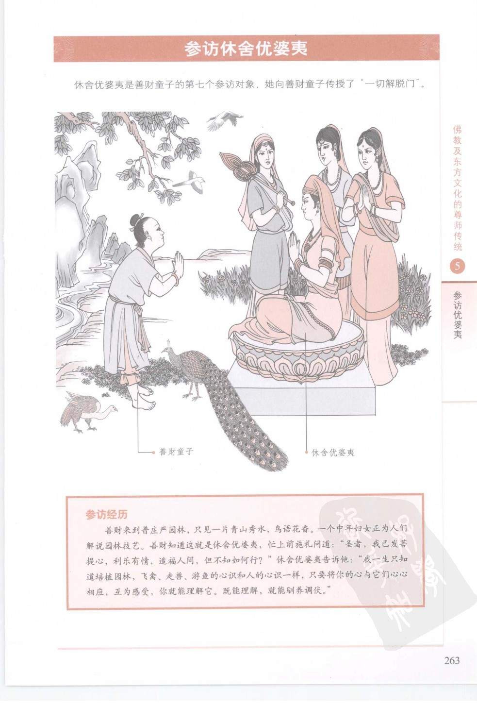 53参中的小故事(4)善财童子参访优婆夷(图)摘自:《图解华严经》 文字录入:东方阳熹