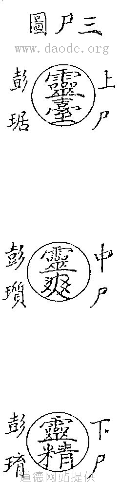 三毒者,三尸也。人身有三尸神,名三毒。上尸名彭琚,管人上焦善恶;中尸名彭 ,管人中焦善恶;下尸名彭 ,管人下焦善恶。上尸住玉枕关,中尸住夹脊关,下尸住尾闾关,每逢庚申甲子,诣奏善恶。又有九蛊作害不浅,阻塞三关九窍,使其真阳不能上升。而九蛊俱有名字,一曰伏蛊,住玉枕窍;二曰龙蛊,住天柱窍;三曰白蛊,住陶道窍;四曰肉蛊,住神道窍;五曰赤蛊,住夹脊窍;六曰隔蛊,住玄枢窍;七曰肺蛊,住命门窍;八曰胃蛊,住龙虎窍;九曰蜣蛊,住尾闾窍。三尸住三关,九蛊住九窍,变化多端,隐显莫测,化美色,梦遗阳精,化幻境,睡生烦恼,使其大道难成矣。故丹经云:三尸九蛊在人身,阻塞黄河毒气深。行者打开三洞府,九蛊消灭寿长生。正此之谓也。不知修道之士可知斩三尸杀九蛊之法否?倘若不知,急访明师,低心求指大道,请动孙悟空,在东海龙宫求来金箍棒,打三关;借来猪八戒之钉耙,扒开九窍,而三尸亡形,九蛊灭迹,关窍通彻,法轮常转,性根长存,命根永固,七情顿息,六欲不生,三毒消灭矣。
