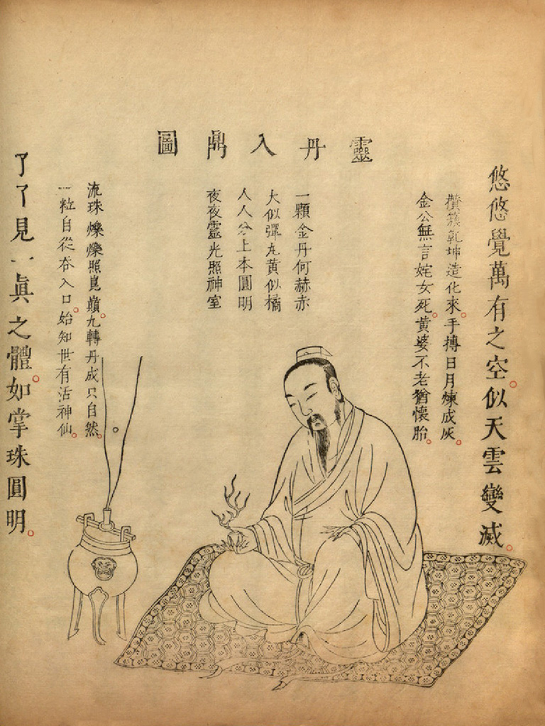 攒簇乾坤造化来,手传日月炼成灰。 金公无言姹女死,黄婆不老犹怀胎。 流珠烁烁照昆巅,九转丹成只自然。 一粒自从吞入口,始知世有活神仙。