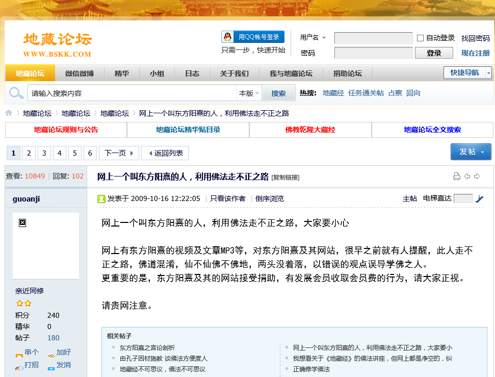 以下是guoanji(郭安吉)在“地藏论坛”发表的毁谤言论: