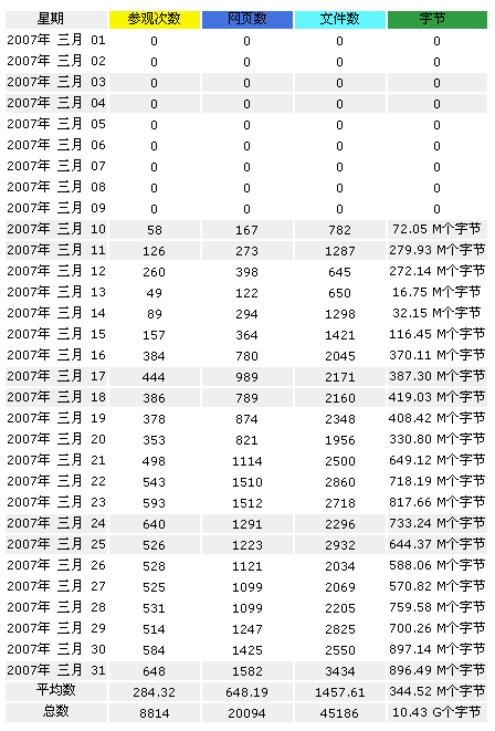 2007年3月10日-2007年12月31日,文件下载统计。
