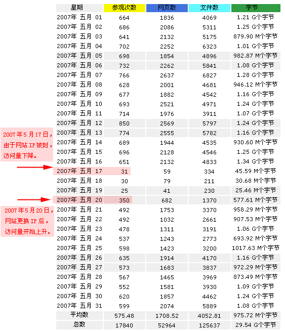 2007年5月17日,网站IP被封;2008年5月20日,网站更换IP。
