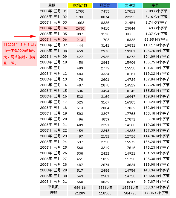 尽管对下载和流量进行了控制,但2008年1月1日-2008年12月29日,参观者仍然有19万。