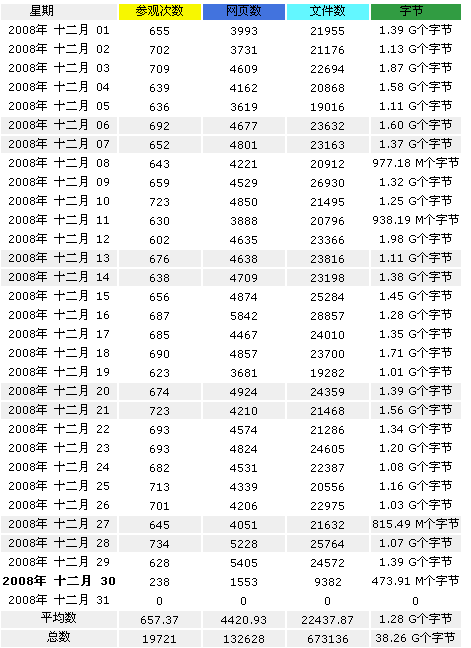 2008年12月的日平均访问量。 写于:2008年12月31日